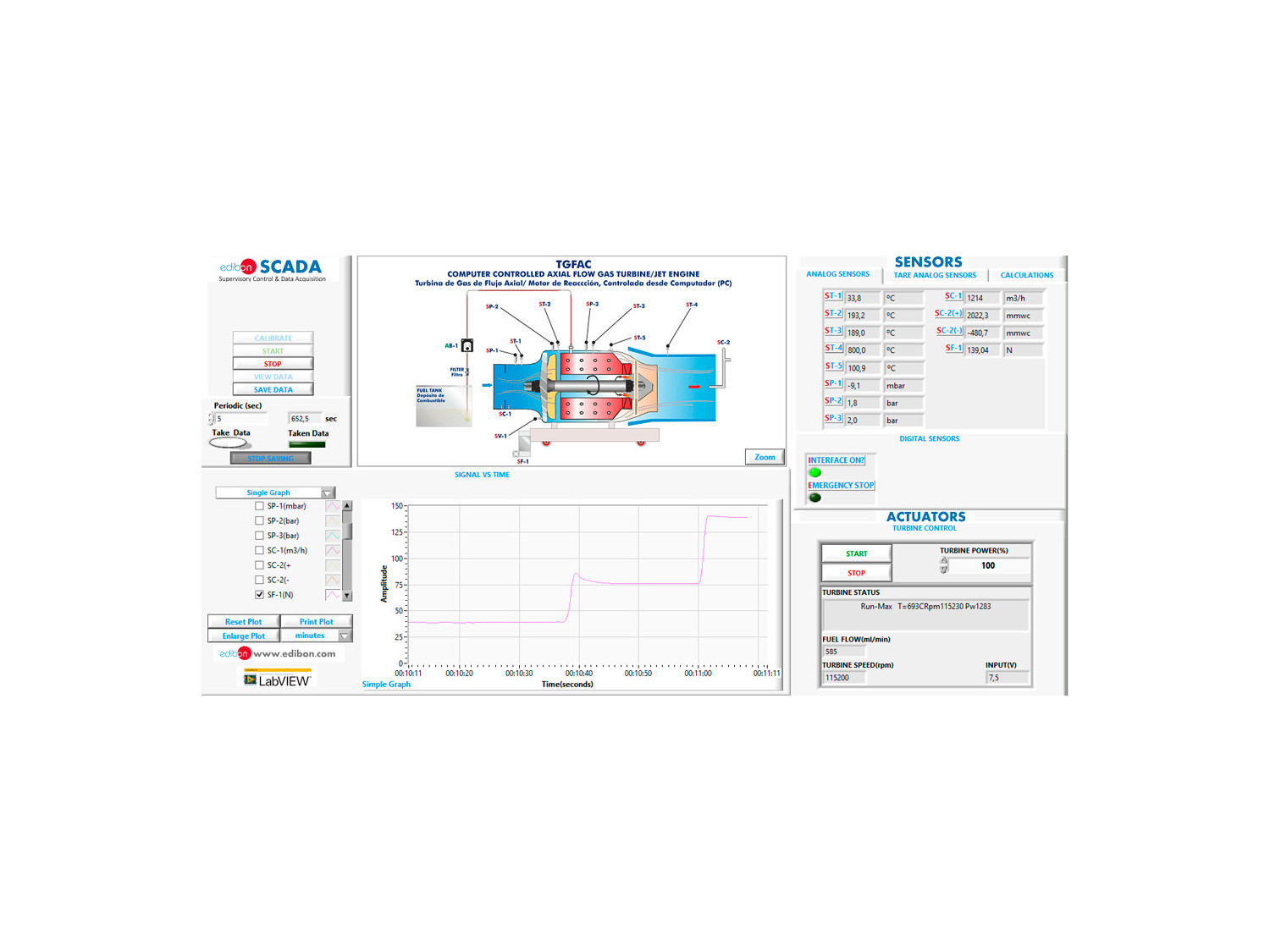 The Computer Controlled Axial Flow Gas Turbine/ Jet Engine, "TGFAC", designed by EDIBON is a teaching unit that demonstrates the operation of a gas turbine as reaction engine.