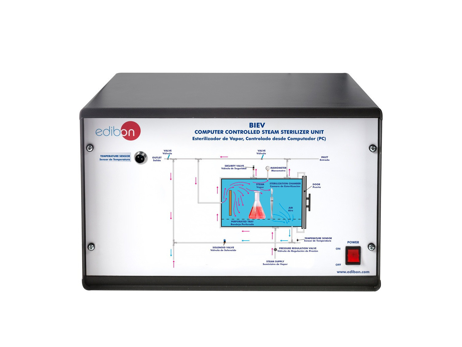 The Computer Controlled Steam Sterilization, "BIEV", is a real unit used in many medical and research centers for the correct sterilization of the typical instruments used, avoiding possible contaminating effects produced by infectious pathogens.