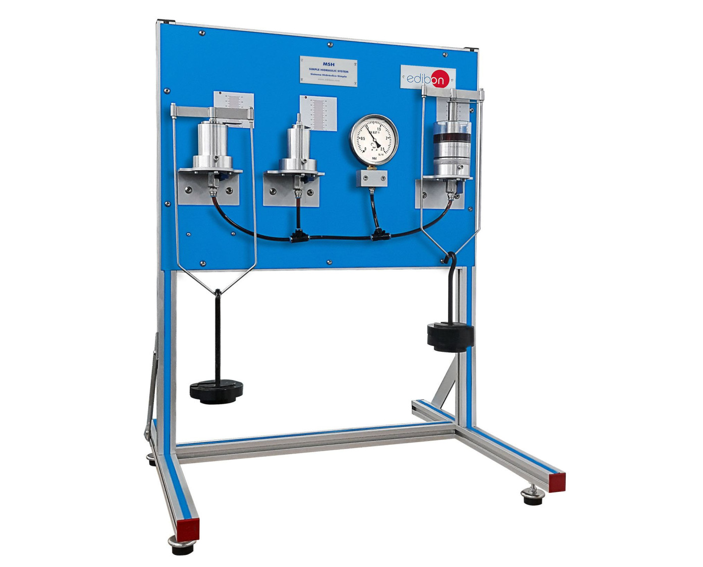 The Simple Hydraulic Unit, "MSH", has been designed for studies related to mechanical engineering and motor vehicles. It is used to demonstrate how a liquid can be used to transmit a force.