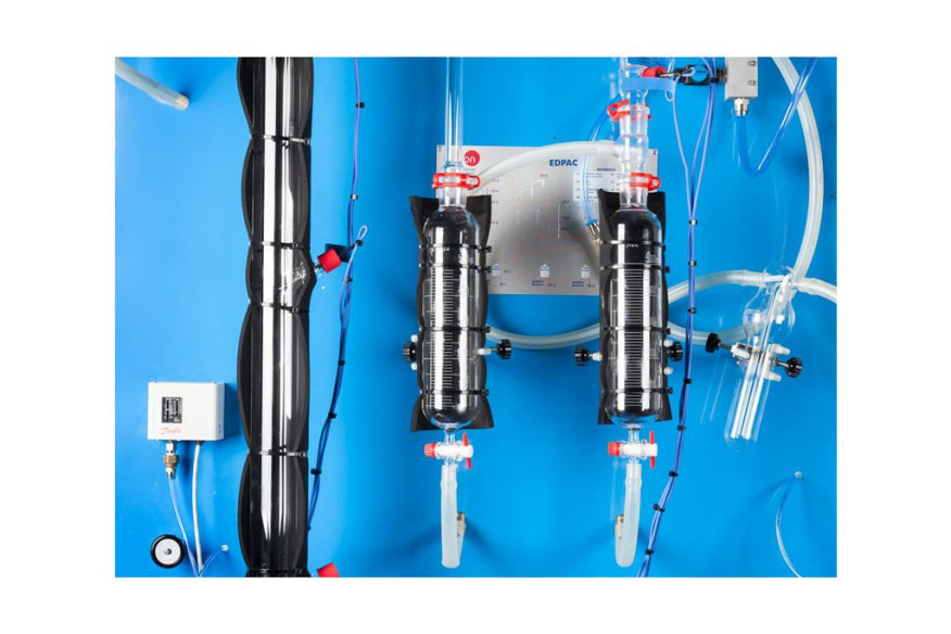 The unit consists of two evaporators with a single glass tube, allowing the student to observe all the processes that take place in the unit.
