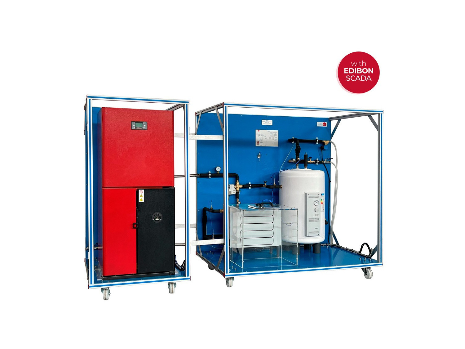 The Computer Controlled Biomass Process Unit "EBMC", designed by EDIBON, is a unit that allows the user to study heating systems and how to obtain domestic hot water with a biomass boiler.