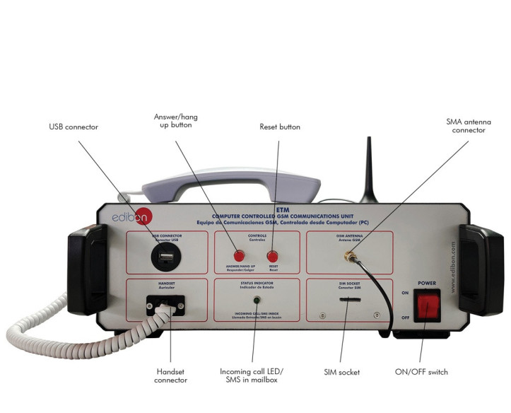 The ETM unit allows to use the basic mobile services and visualize the steps needed to it, through the computer. The ETM unit also allows to study the management of the SIM card memory for SMS inbox, phonebook, etc.
