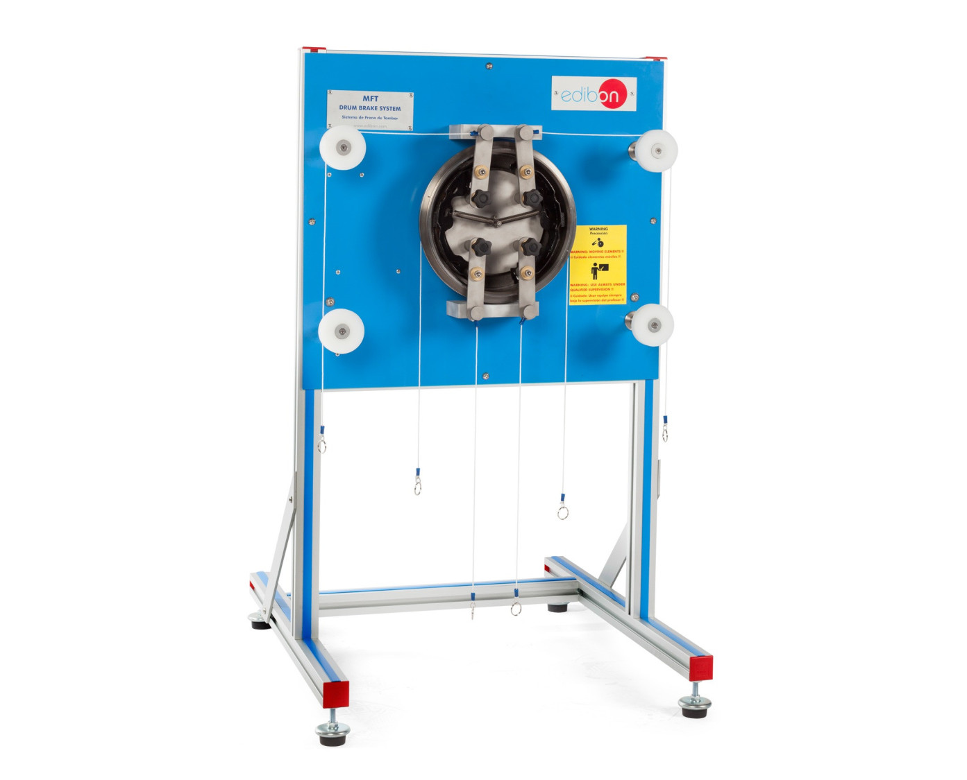 The Drum Brake Unit, "MFT", designed by EDIBON, allows the study of the forces acting on a drum brake, the difference between the braking torque of the primary shoe and secondary shoe braking systems and determining the coefficient of friction between the drum and the brake shoe, also with the equipment the different types of configurations of existing shoes can be studied.
