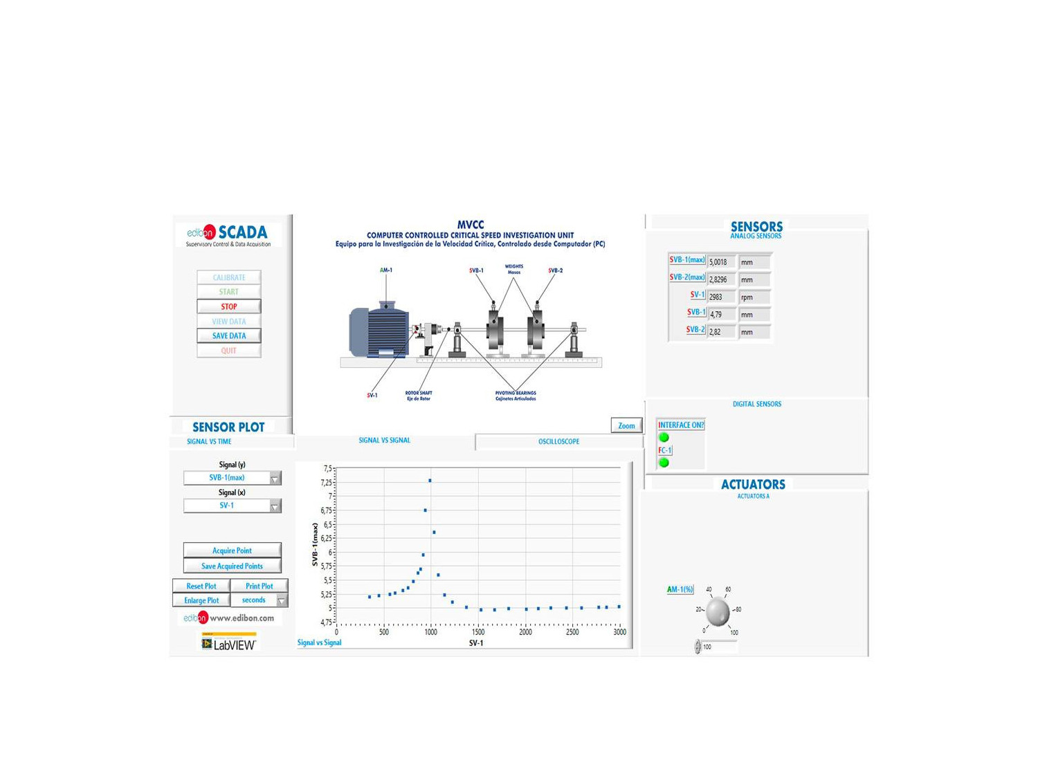 Some phenomena that appear in mechanical systems, such as vibration, self-centering and resonance in rotary shafts, can be clearly demonstrated with the Computer Controlled Critical Speed Investigation Unit, "MVCC".
