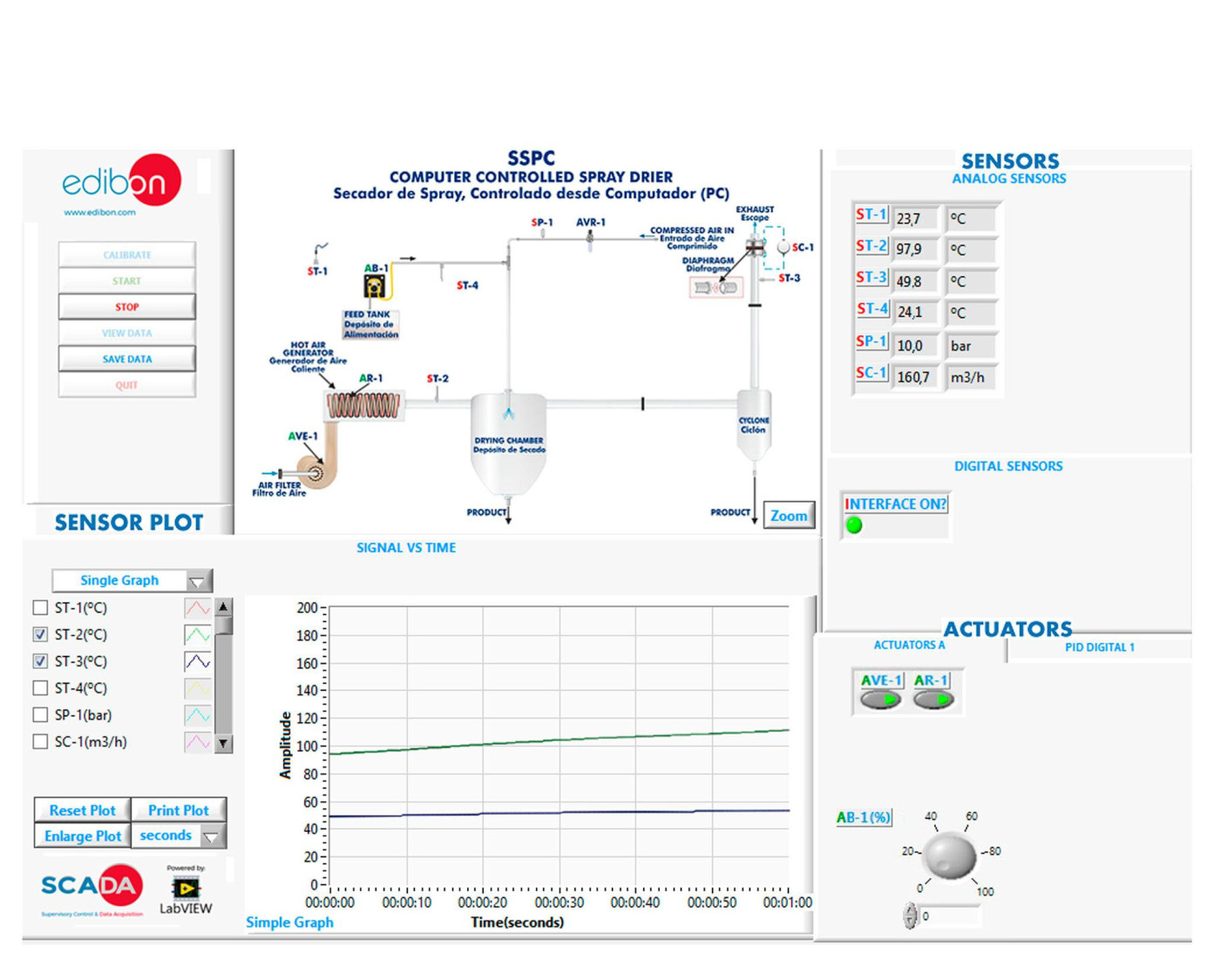 The Computer Controlled Spray Drier, "SSPC", designed by EDIBON, allows to study processes that involve aqueous emulsions, solutions, suspensions and colloidal solutions.