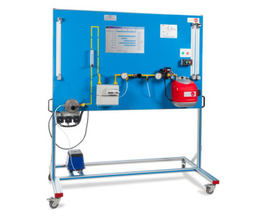 The Three-Way Mixing Valve Training Unit, "TEV3V", allows to demonstrate the function of a three-way mixing valve in a hot water heating system. The three-way mixing valve in the heating system regulates the supply water temperature to a heating system.