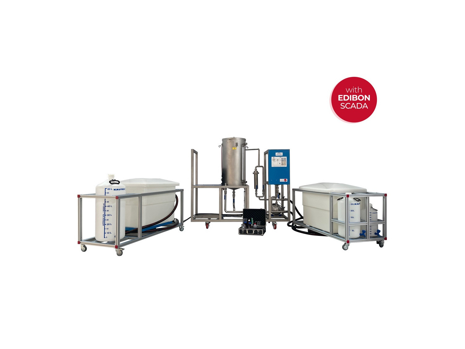 The Computer Controlled Biodiesel Process Unit, "EBDC", allows the production of biodiesel from vegetable oil by studying the main parameters that influence the performance of the process and the final quality of the product. Among these parameters are the operating temperature, the amount of catalyst used and the operating time.