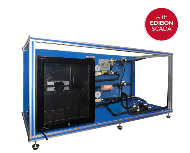 The SCADA software, developed by EDIBON, has a data acquisition and control system that enables to automate the unit and to perform and assess all the practical exercises quickly, as well as to represent all the measured and calculated magnitudes in real time.