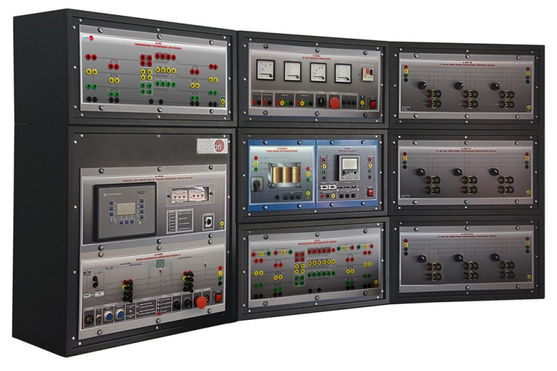 Además, esta aplicación incluye un módulo de autotransformador trifásico para dar paso a la distribución de la energía eléctrica. También incluye un analizador de redes para analizar y monitorizar los parámetros eléctricos de la línea tales como el factor de potencia, armónicos, caídas de tensión, pérdidas de potencia, etc.