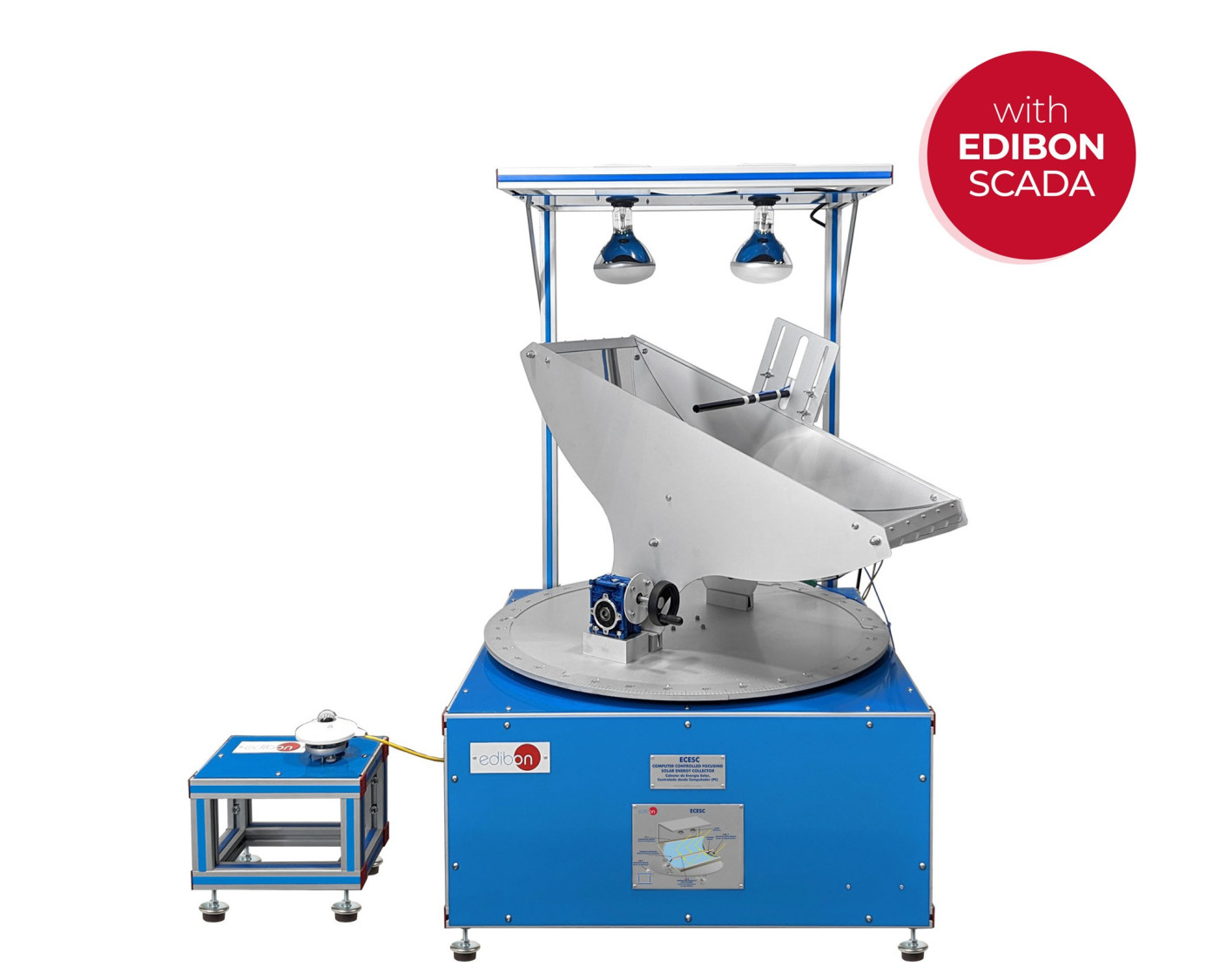 El equipo incluye un reflector parabólico de acero inoxidable altamente pulido, en una base móvil. Permite su ajuste de posición horizontal y verticalmente pudiendo enfocar la energía solar desde distintas posiciones en un colector de energía. El reflector incluye un solarímetro (piranómetro) que mide la radiación solar incidente.