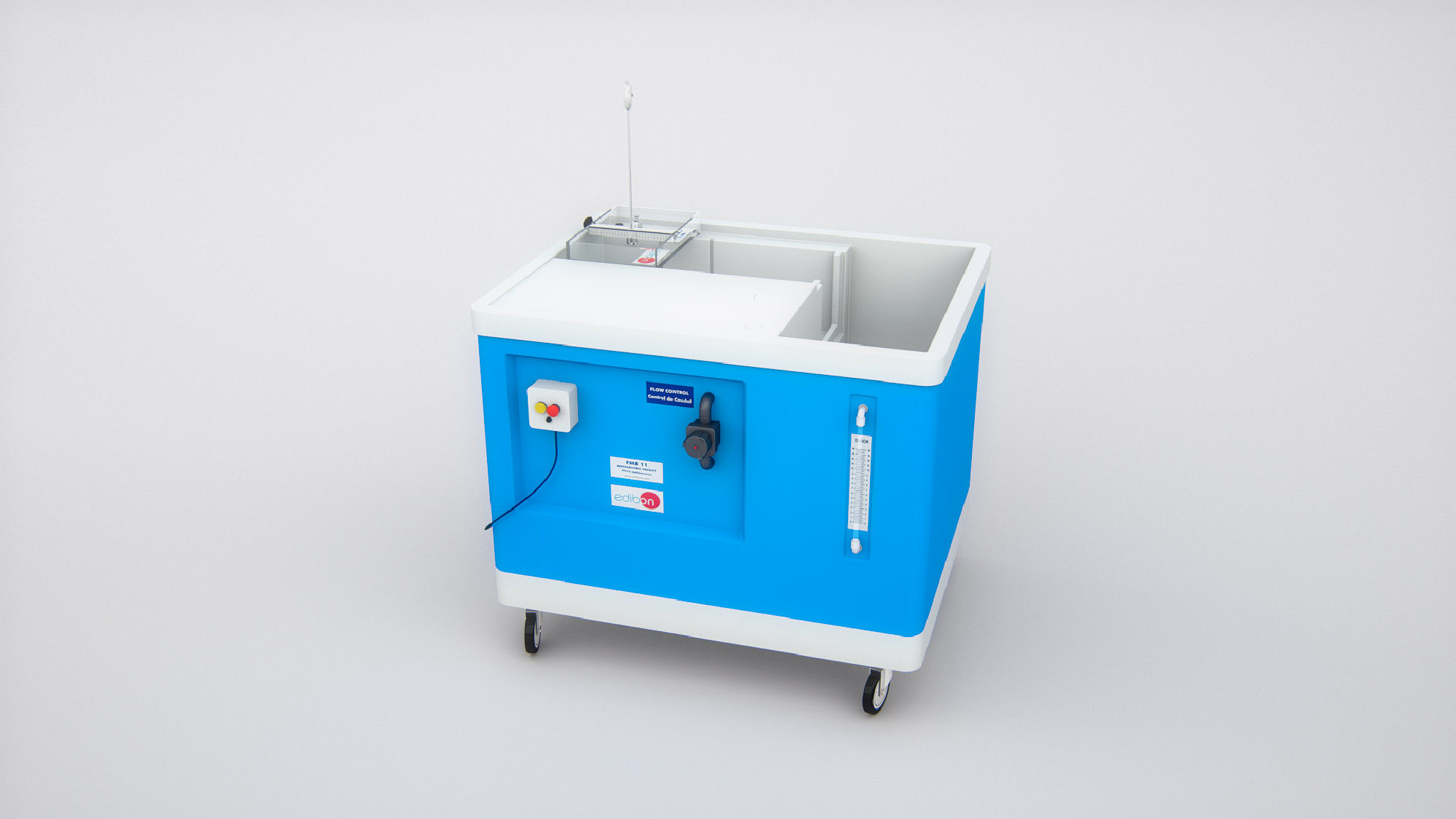 El equipo de Demostración de Altura Metacéntrica, "FME11", diseñado por EDIBON, permite el estudio de la estabilidad de un cuerpo flotante mediante el cálculo de la altura metacéntrica del mismo.