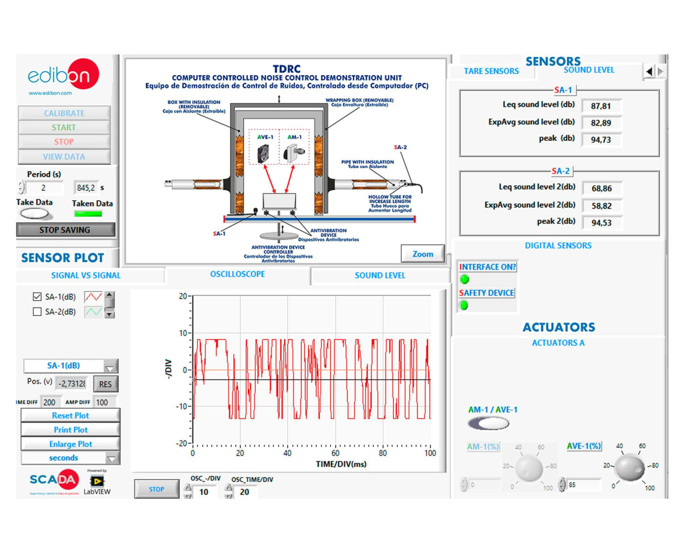 El Equipo de Demostración de Control de Ruidos, Controlado desde Computador (PC), "TDRC", ha sido diseñado por EDIBON para proporcionar resultados visuales y cuantitativos relacionados con el control de ruido y vibración.