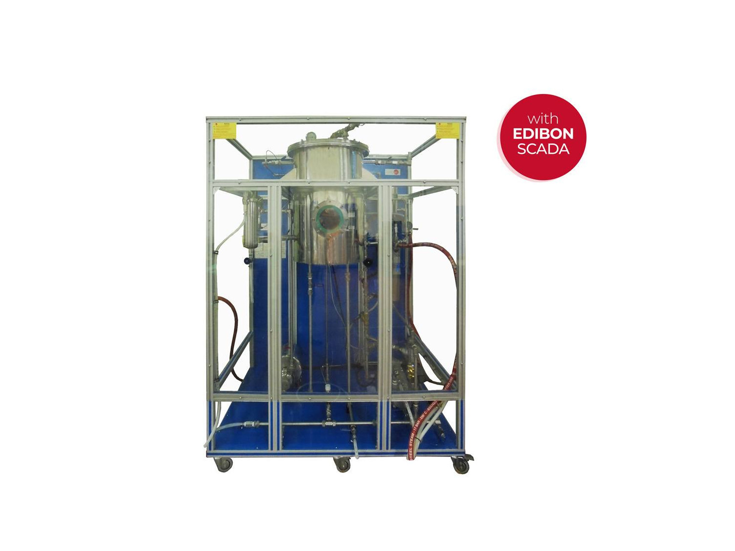 Se suministran los sensores de presión, de temperatura y caudal donde son necesarios, así como las válvulas de muestreo y de desagüeadecuadas. Este equipo está protegido mediante una pantalla transparente.