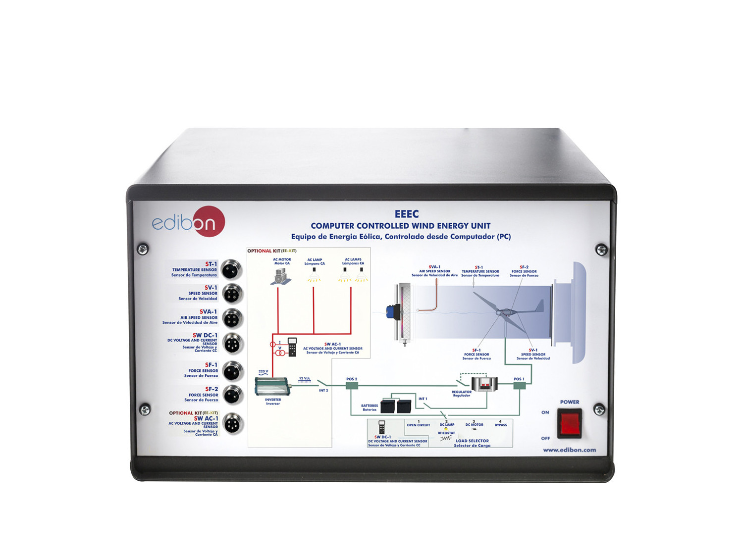 El Equipo de Energía Eólica, Controlado desde Computador (PC), "EEEC", contiene un aerogenerador a escala de laboratorio, y se emplea para estudiar la conversión de la energía eólica cinética en energía eléctrica y para estudiar la influencia de ciertos factores en su generación.