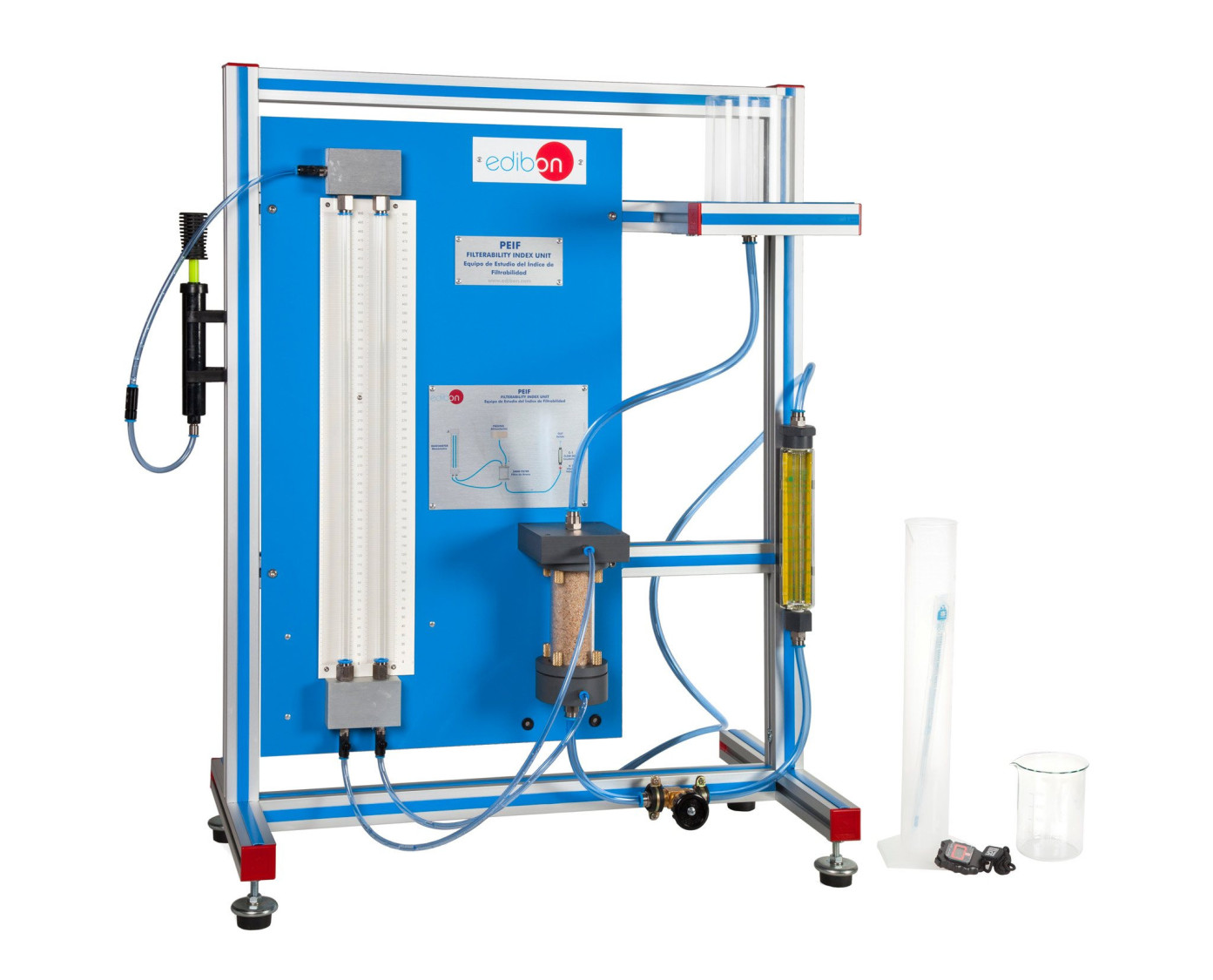 El Equipo de Estudio del Índice de Filtrabilidad, "PEIF", diseñado por EDIBON, es un equipo de demostración del proceso de filtrado a través de un medio poroso. Permite llevar a cabo ensayos de calidad de agua sobre suspensiones a filtrar por medio de arena u otro medio granular similar.