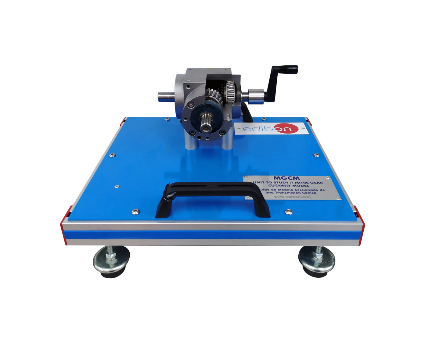 El Equipo de Modelo Seccionado de una Transmisión Cónica, "MGCM", diseñado por EDIBON, permite el estudio de este tipo de transmisión, que utiliza engranajes cónicos para transmitir movimiento entre dos ejes que se cortan, normalmente de forma perpendicular.