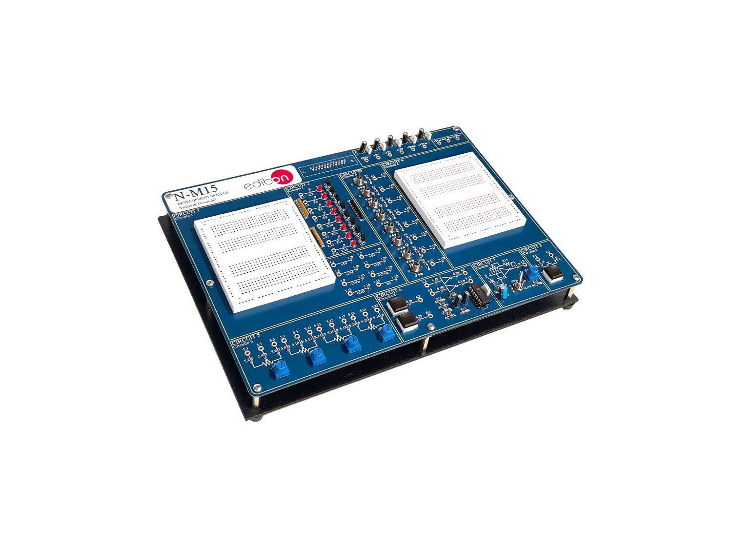 El Modulo de Desarrollos Propios "N-M15", diseñado por EDIBON, consiste en una placa circuito que permitirá la realización de un conjunto de montajes en la mencionada placa, permitiendo el estudio de los conceptos básicos de los circuitos de corriente directos.