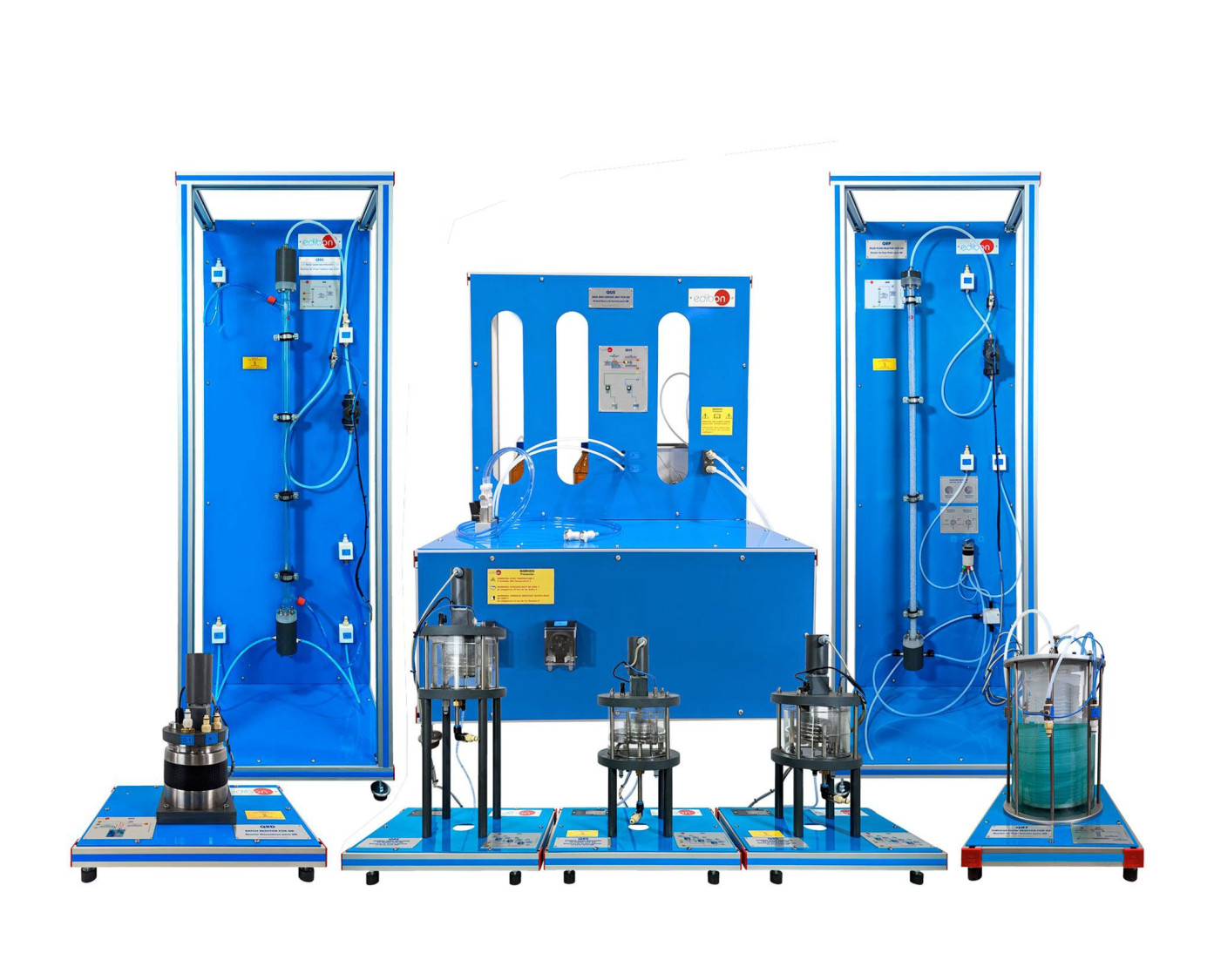 Los Reactores Químicos, "QR", han sido diseñados por EDIBON para el estudio y la comparación de diferentes tipos de reactores químicos de una forma fácil y sencilla y permitiendo así, a pequeña escala realizar los estudios y prácticas necesarias para comprender el funcionamiento de los reactores. Estos reactores permiten la comparación de diferentes tipos de reactores químicos y, con cada tipo de reactor se permite el estudio de la influencia de la temperatura de reacción y del tiempo de residencia, gracias al baño termostático, dos depósitos de 1 l y dos bombas de regulación de hasta 3 l/min incluidas en el suministro.