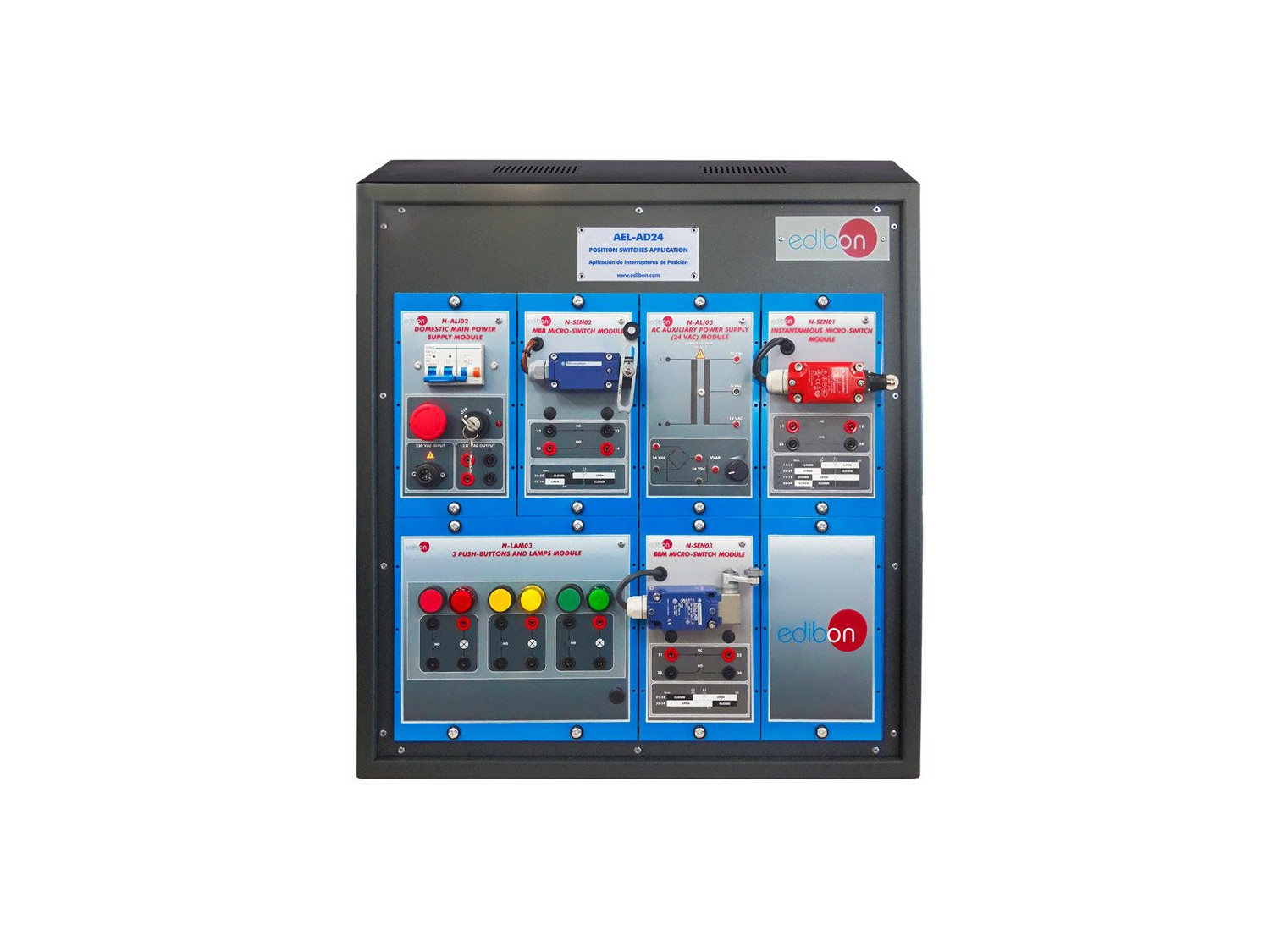 L'Application d’Interrupteurs de Position, "AEL-AD24", a été conçue par EDIBON pour démontrer le fonctionnement des différents interrupteurs de sécurité tels que le MBB (make before break), le BBM (beak before make) et le micro-interrupteur instantané.