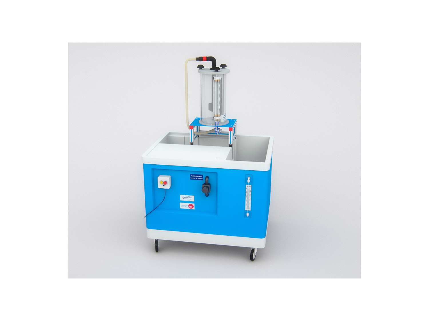 Il est possible de mesurer la hauteur du tube de Pitot et la hauteur totale à travers l’orifice, dans un panneau de deux tubes manométriques situé à côté du réservoir.