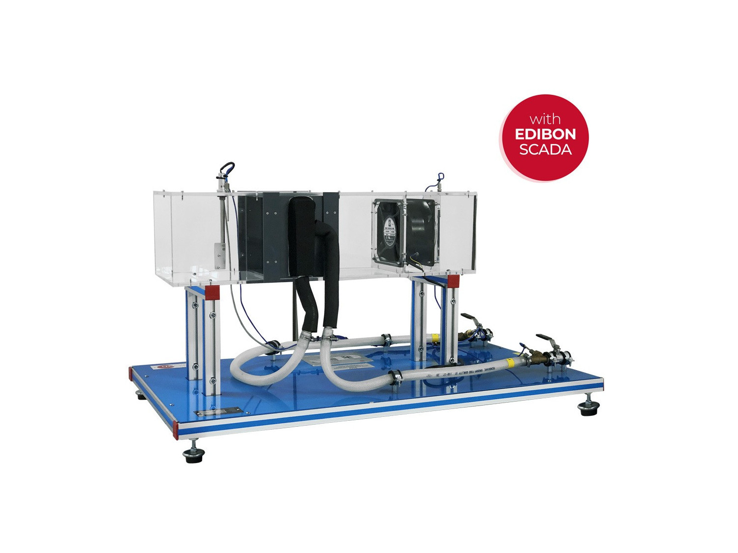 L’Échangeur de Chaleur à Flux Croisés pour TICC, "TICF", conçu par EDIBON, offre un outil de recherche thermique efficace en permettant l’étude du transfert de chaleur entre deux fluides dans une configuration à contre-courant. Dans ce système, un courant d’eau chaude provenant de l’unité de base interagit avec un flux d’air généré par un ventilateur à travers un radiateur perpendiculaire.