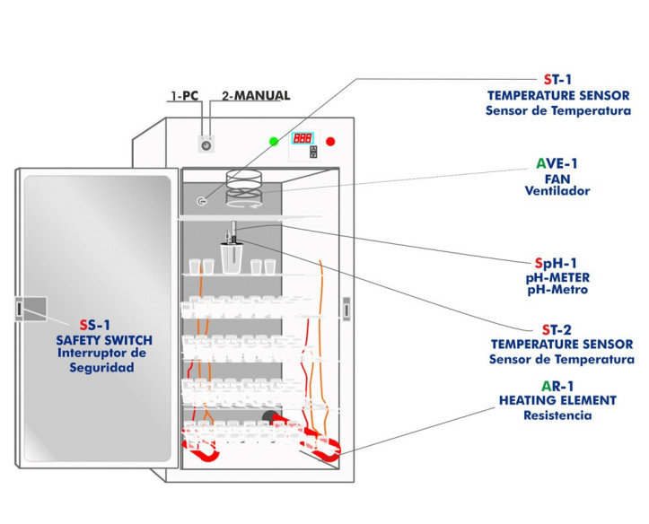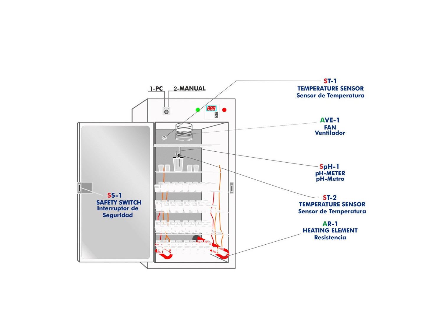 L'Incubateur de Yaourt Didactique, Contrôle par Ordinateur (PC), "IYDC", a été conçu par EDIBON, est d'enseigner à l'étudiant la production de yaourt de la manière la plus visuelle possible et les paramètres physiques et chimiques qui peuvent être mesurés avec ce produit.