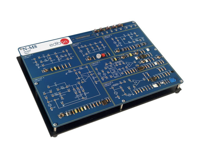 Avec le Module de Filtres, "N-M8", conçue par EDIBON, il est possible d’étudier les différents types de filtres : RC et LC, en configuration de type "T", les filtres actifs et aussi d’étudier les associations de l’un à l’autre afin de pouvoir à pratiquer avec des filtres plus complexes, pour obtenir d’autres filtres avec certaines caractéristiques souhaitées (filtre passe-bas, passe-haut, passe-bande et bande éliminée).