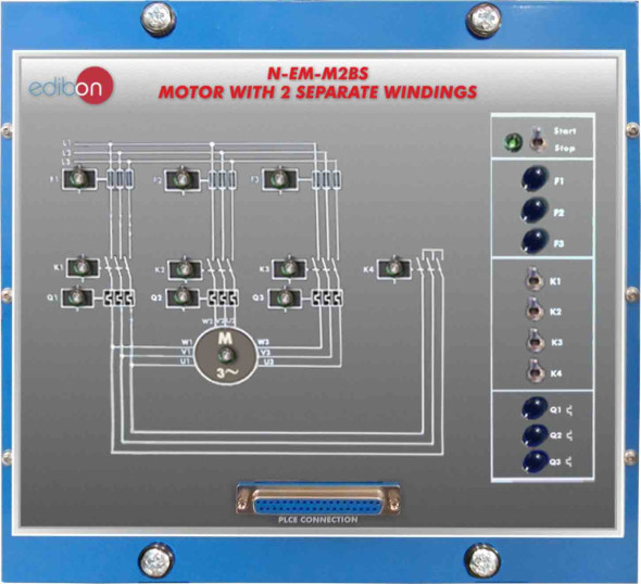 "M-EM-M2BS" représente un moteur triphasé avec deux enroulements séparés et émule le mouvement du moteur.