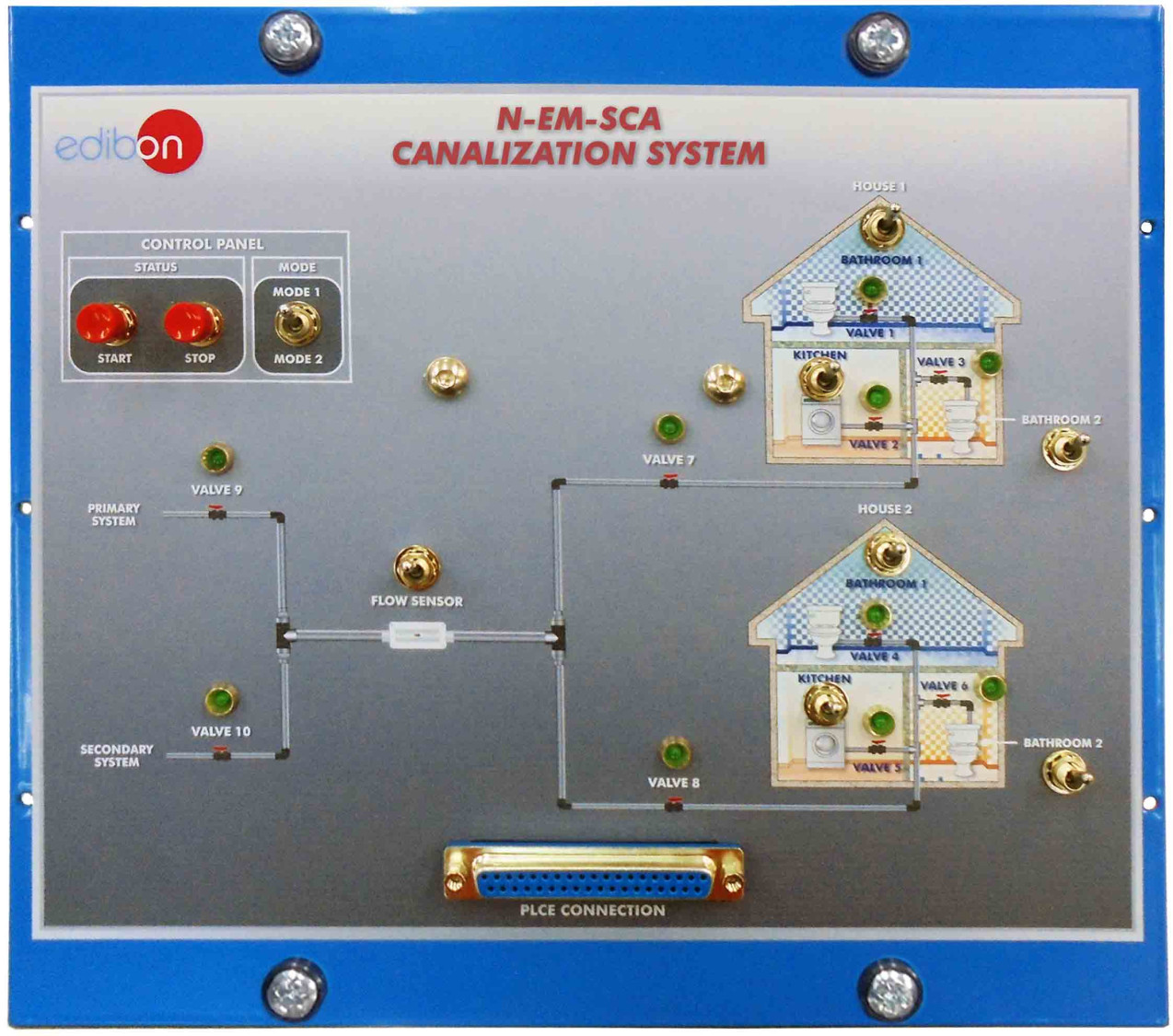 Les différents interrupteurs et boutons-poussoirs émulent l'utilisation de l'eau à l'intérieur des maisons, le capteur de débit d'eau pour la canalisation, etc.