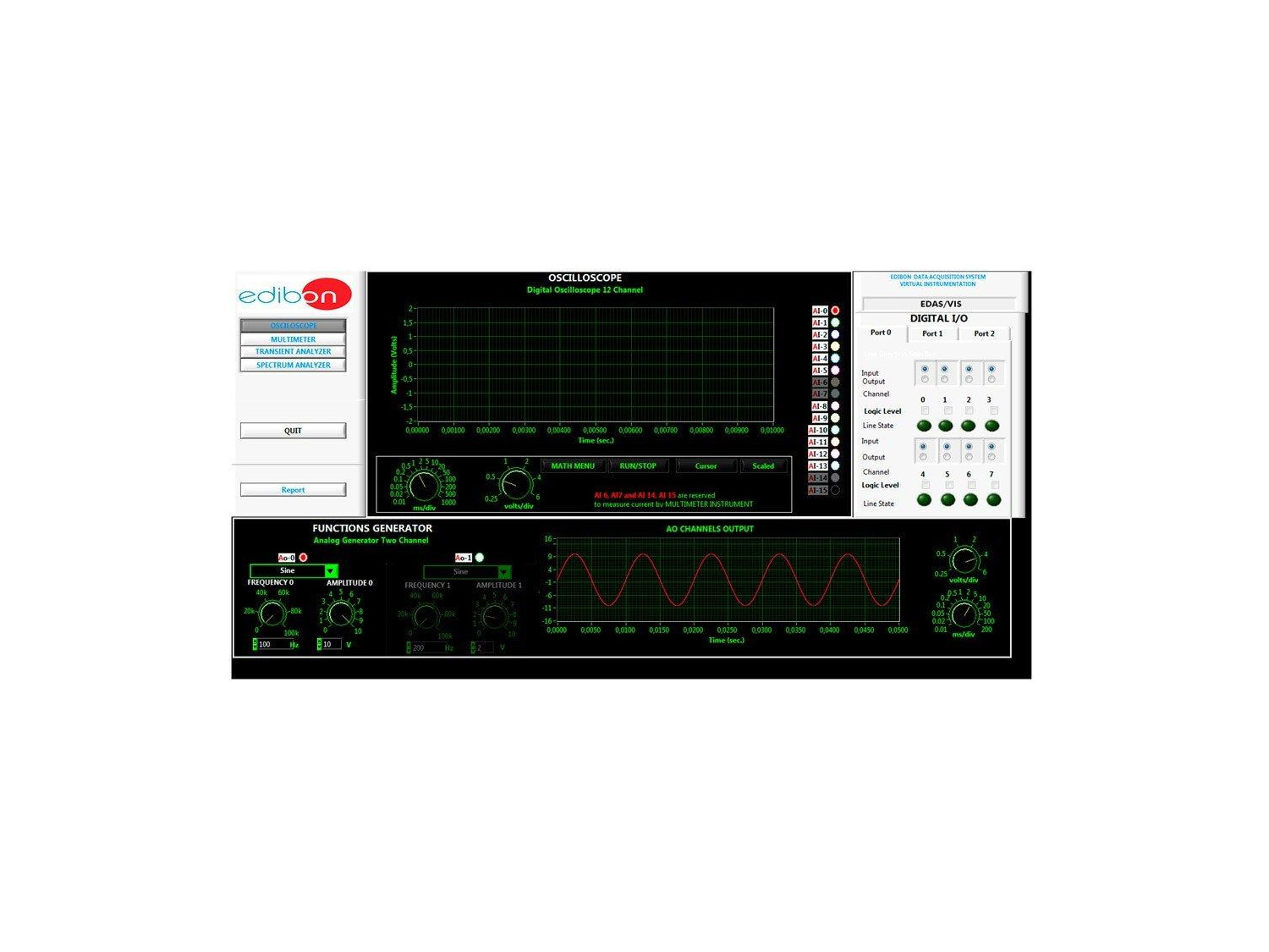 Le Système EDIBON d’Acquisition de Données et d’Instrumentation Virtuelle (vitesse : 1 250 000 échantillons/s), « EDAS/VIS-1.25 », conçu par EDIBON, est un système d’acquisition et de contrôle destiné aux équipements d’électronique et de communications EDIBON ne disposant pas de supervision, de contrôle ou d’acquisition de données intégrés. Ce système permet l’étude de signaux à haute vitesse et l’analyse détaillée de phénomènes rapides et transitoires grâce à l’instrumentation virtuelle, tant pour la formation que pour la recherche appliquée.