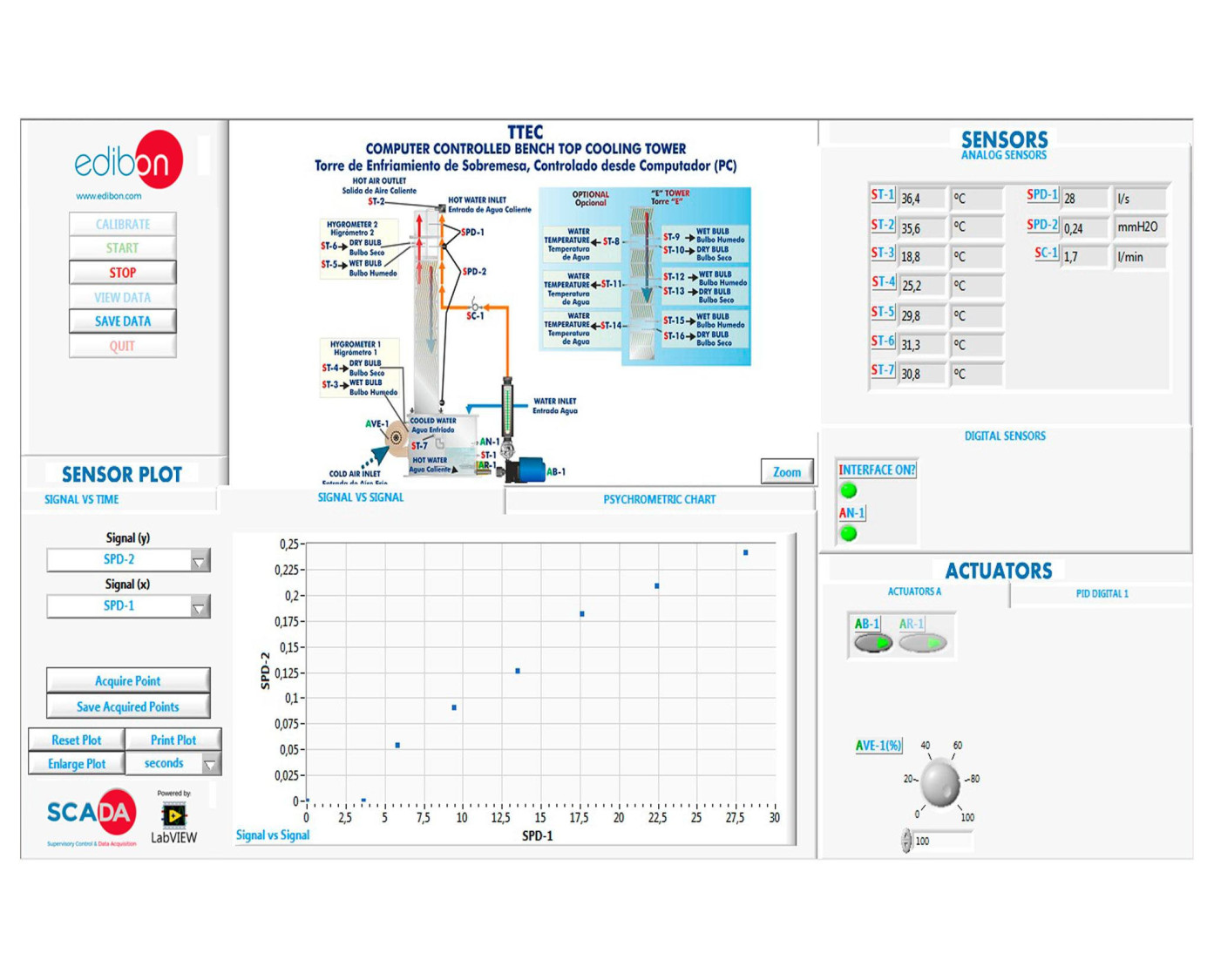 Cette Unité Contrôlée par Ordinateur est fournie avec le Système de Contrôle par Ordinateur EDIBON (SCADA), et comprend : l'Unité elle-même + un Boîtier d'Interface de Contrôle + une Carte d'Acquisition de Données + des Progiciels de Contrôle par Ordinateur, d'Acquisition de Données et de Gestion de Données, pour contrôler le processus et tous les paramètres impliqués dans le processus.