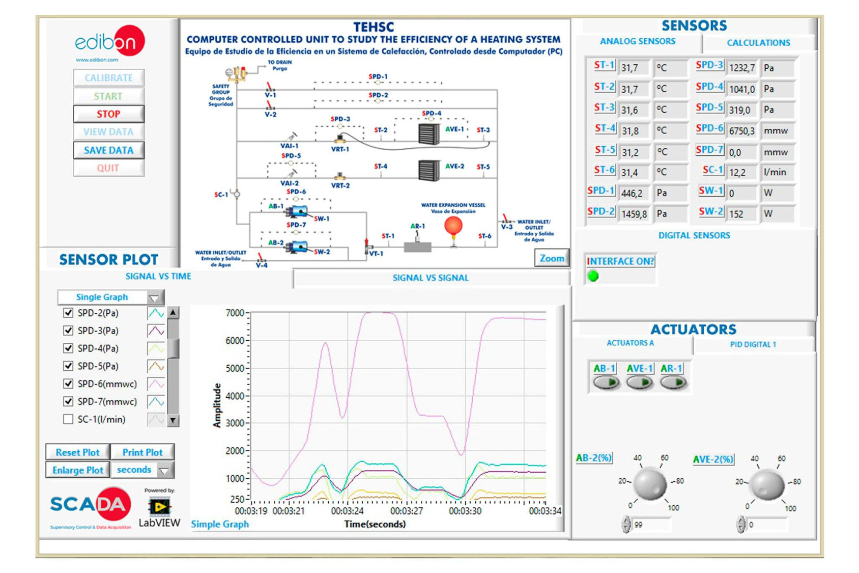 Cette Unité Contrôlée par Ordinateur est fournie avec le Système de Contrôle par Ordinateur EDIBON (SCADA), et comprend : l'Unité elle-même + un Boîtier d'Interface de Contrôle + une Carte d'Acquisition de Données + des Progiciels de Contrôle par Ordinateur, d'Acquisition de Données et de Gestion de Données, pour contrôler le processus et tous les paramètres impliqués dans le processus.