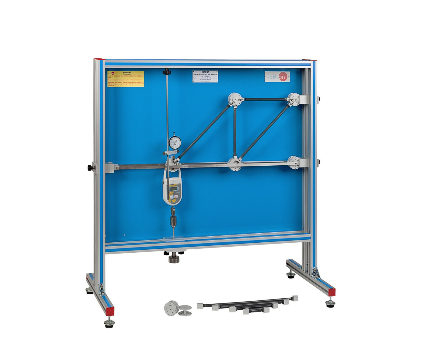 L’Unité d’Étude de la Déformation dans Treillis, "MFCS3", conçue par EDIBON, permet de mesurer les contraintes dans les barres de différents types de treillis, d’étudier la dépendance de la force externe et de comparer les efforts expérimentaux dans les barres avec des méthodes mathématiques telles que la méthode des sections, le théorème de Ritter ou le théorème de Castigliano.
