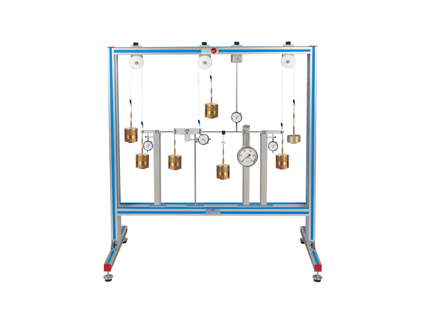 L’Unité d’Étude des Méthodes pour Déterminer la Ligne Élastique, "MDLE", conçue par EDIBON, se compose d’un ensemble de poutres, de plusieurs supports (avec des pinces de fixation et des comparateurs, et avec un dynamomètre), d’un dispositif permettant de générer un moment de flexion, de poulies fixes, de comparateurs et d’un ensemble de poids avec des porte-poids.