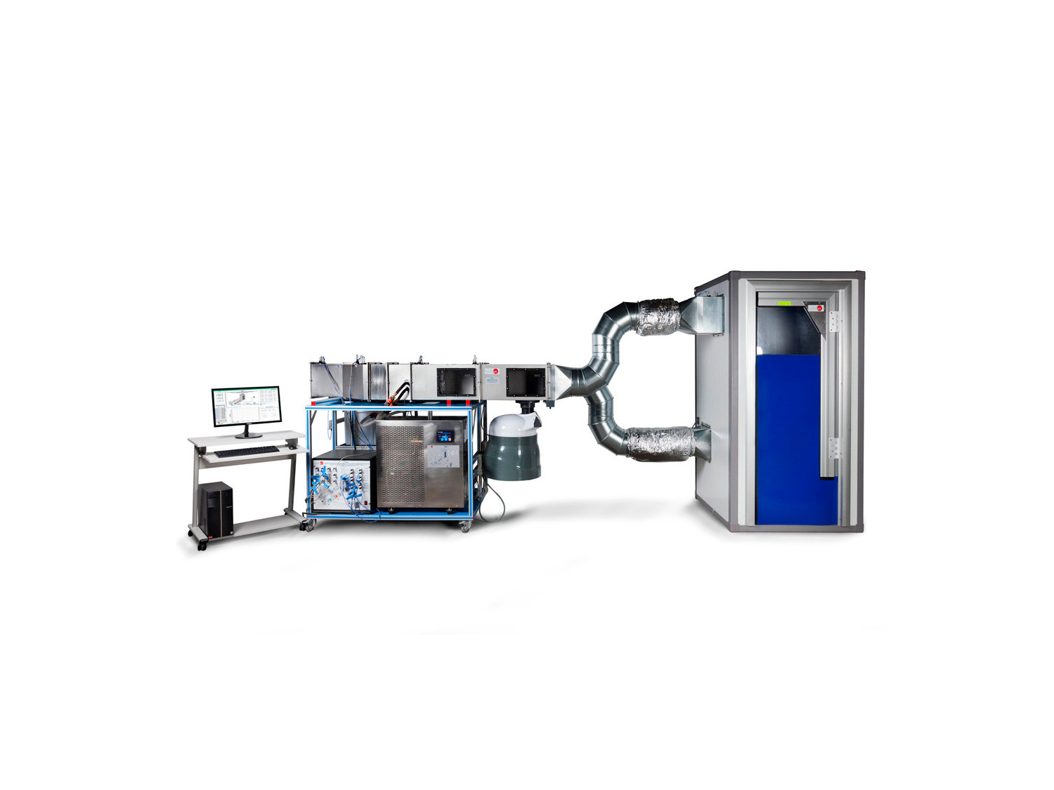 L’Unité de Climatisation avec Chambre Climatique et Refroidisseur d’Eau, Contrôlée par Ordinateur (PC), "TACC", conçu par EDIBON, consiste en une installation de climatisation réelle avec une chambre climatique adaptée à la présence de personnes et permet d’étudier l’influence des différents modes de fonctionnement de l’installation sur leur propre sensation de bien-être.