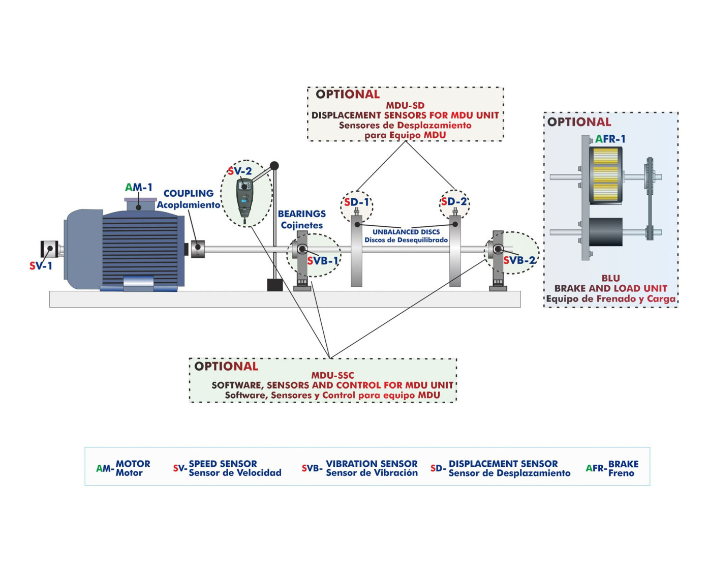 L´Unité de Diagnostic de Machine, Contrôlée par Ordinateur (PC), "MDUC", d’EDIBON permet de réaliser des pratiques de mesure des vibrations, en mesurant le déplacement, la vitesse et l’accélération des vibrations dans la gamme temps-fréquence.