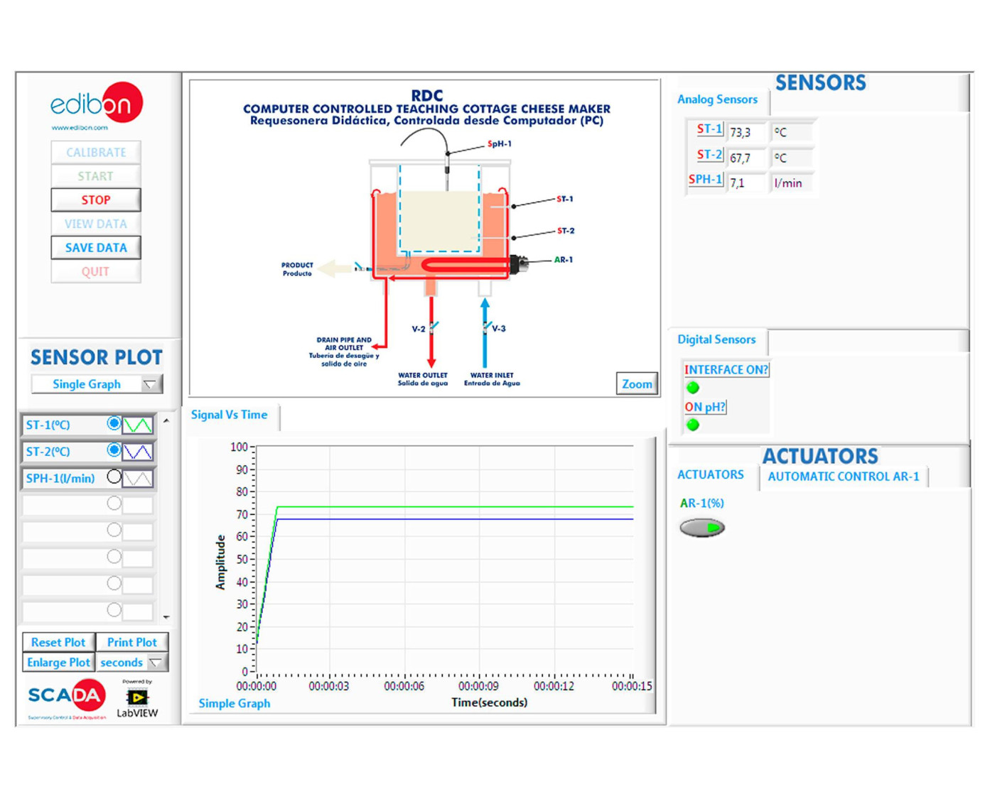 L’Unité Didactique de Fromage Cottage, Contrôlée par Ordinateur (PC), "RDC", conçu par EDIBON, est d’initier l’étudiant à la manière la plus simple de produire du fromage blanc et d’étudier les paramètres chimiques.