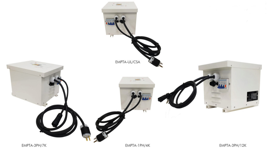 The EMPTA for getting UL or CSA Certification in the USA or Canada, "EMPTA-UL/CSA", includes all necessary protections for a maximum safety. It includes a magnetothermal differential protection, fuses and input and output safety plugs in the transformer.
