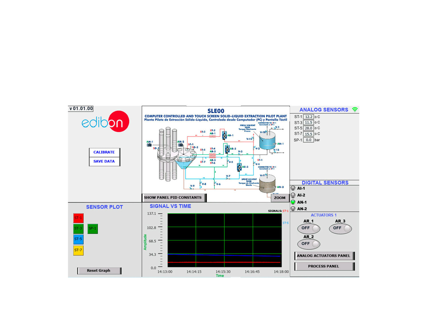 L’Usine Pilote d’Extraction Solide-Liquide, Contrôlée par Ordinateur (PC) et Écran Tactile, "SLE00", permet la séparation d’un soluté de sa matrice solide par contact direct avec un solvant approprié.
