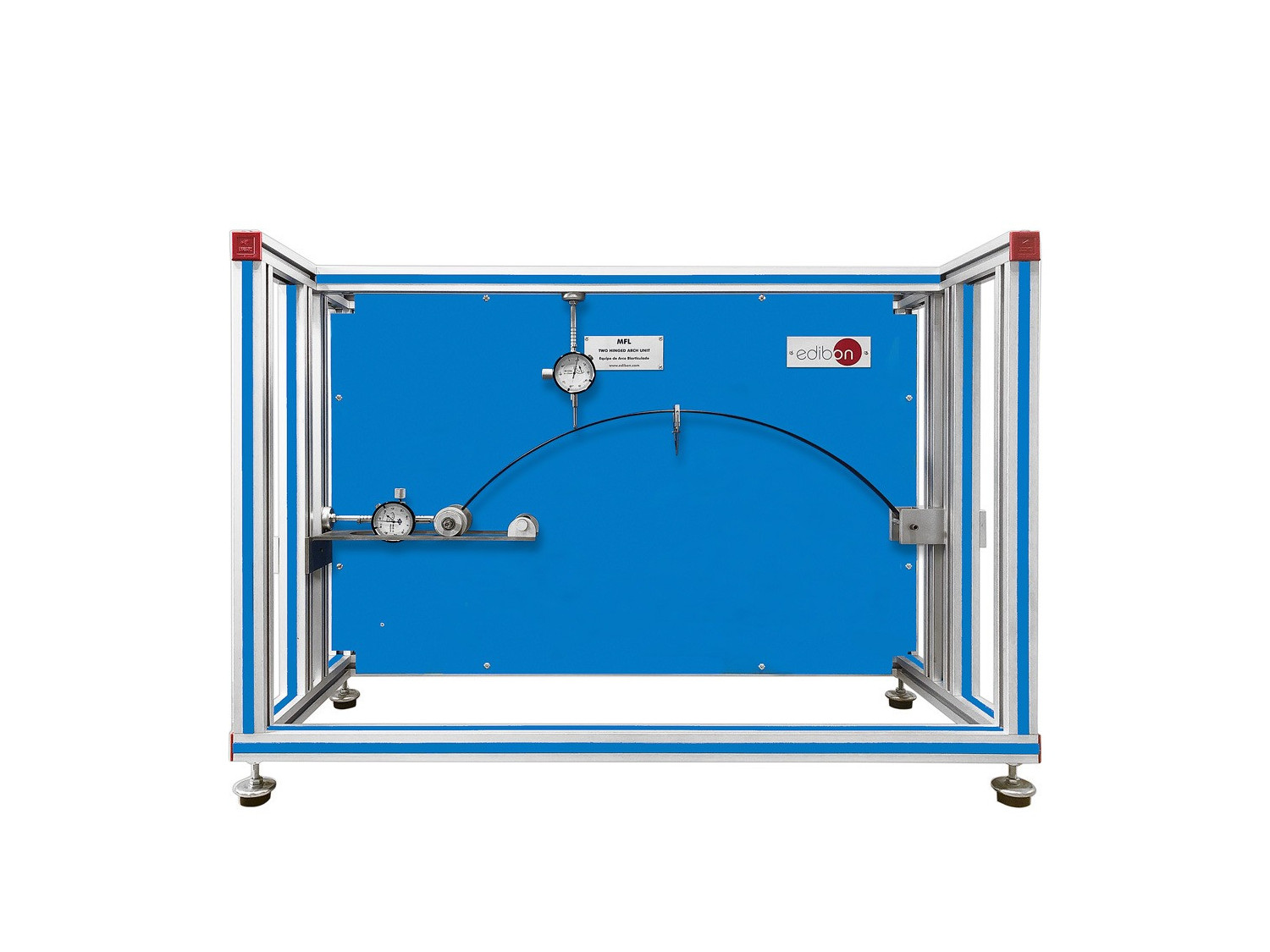 The Two Hinged Arch Unit, "MFL", designed by EDIBON allows to study the response of an arched beam when an external load is applied on it.
