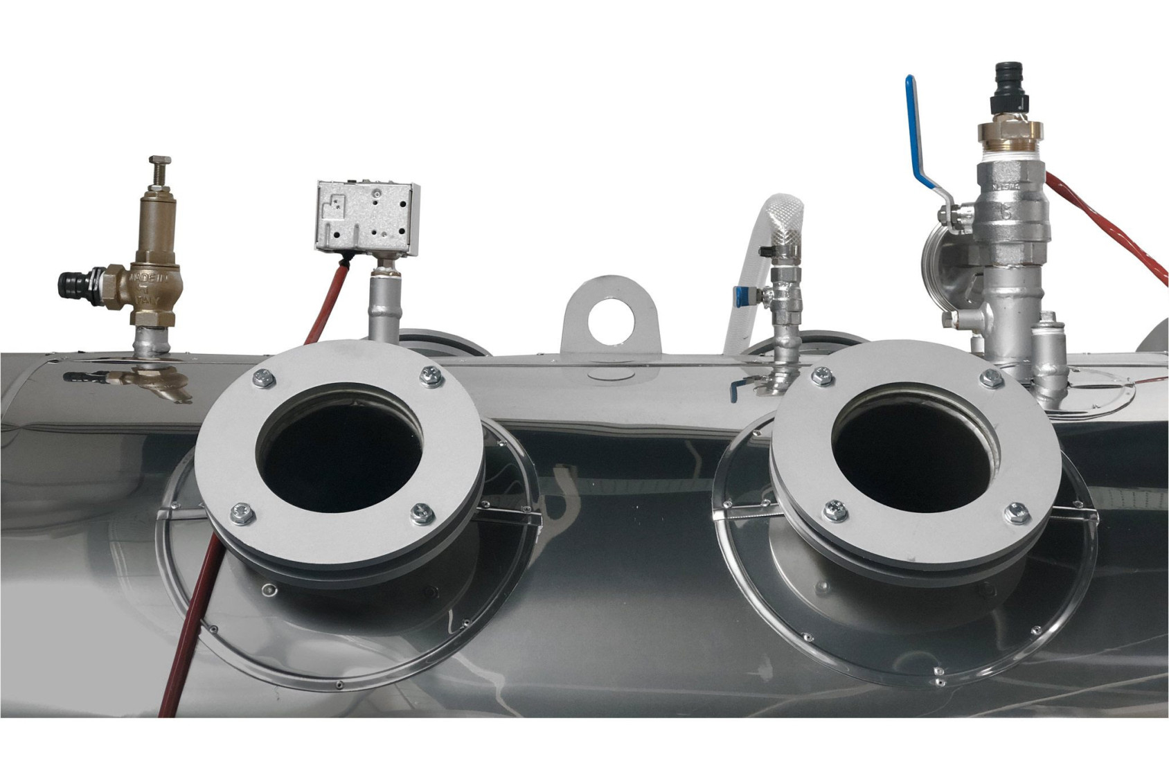 The burner starts the combustion with fuel oil (diesel or gas oil) or with gas (natural gas or LPG). The gas (either from an LPG cylinder or from the premises’ supply) and fuel oil stored in two tanks provided with the unit are fed to the burner through suitable ducts and valves.