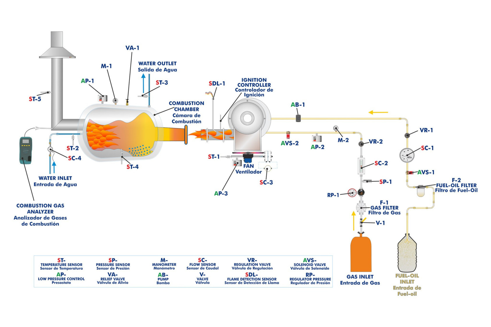 - Effect of the air/fuel ratio both in the efficiency of the combustion and in the measuring of the combustion gases components and in the temperature.