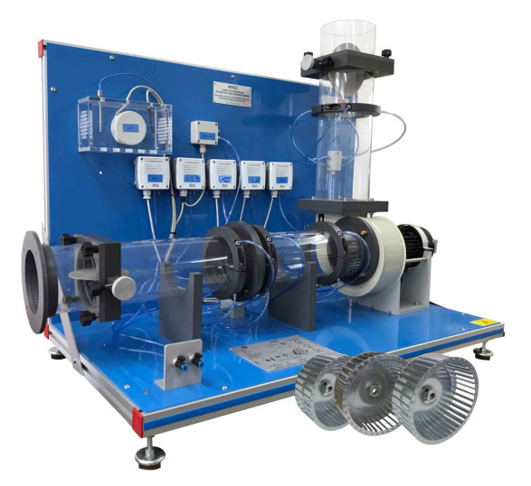 The Computer Controlled Centrifugal Fan Teaching Unit, "HVCC", allows the students to study the operation characteristics of a centrifugal fan. For that purpose, the unit carries out the measurements of flow, speed, temperature, pressure and humidity. Multiple tests related to air flows can be performed with the accessories.
