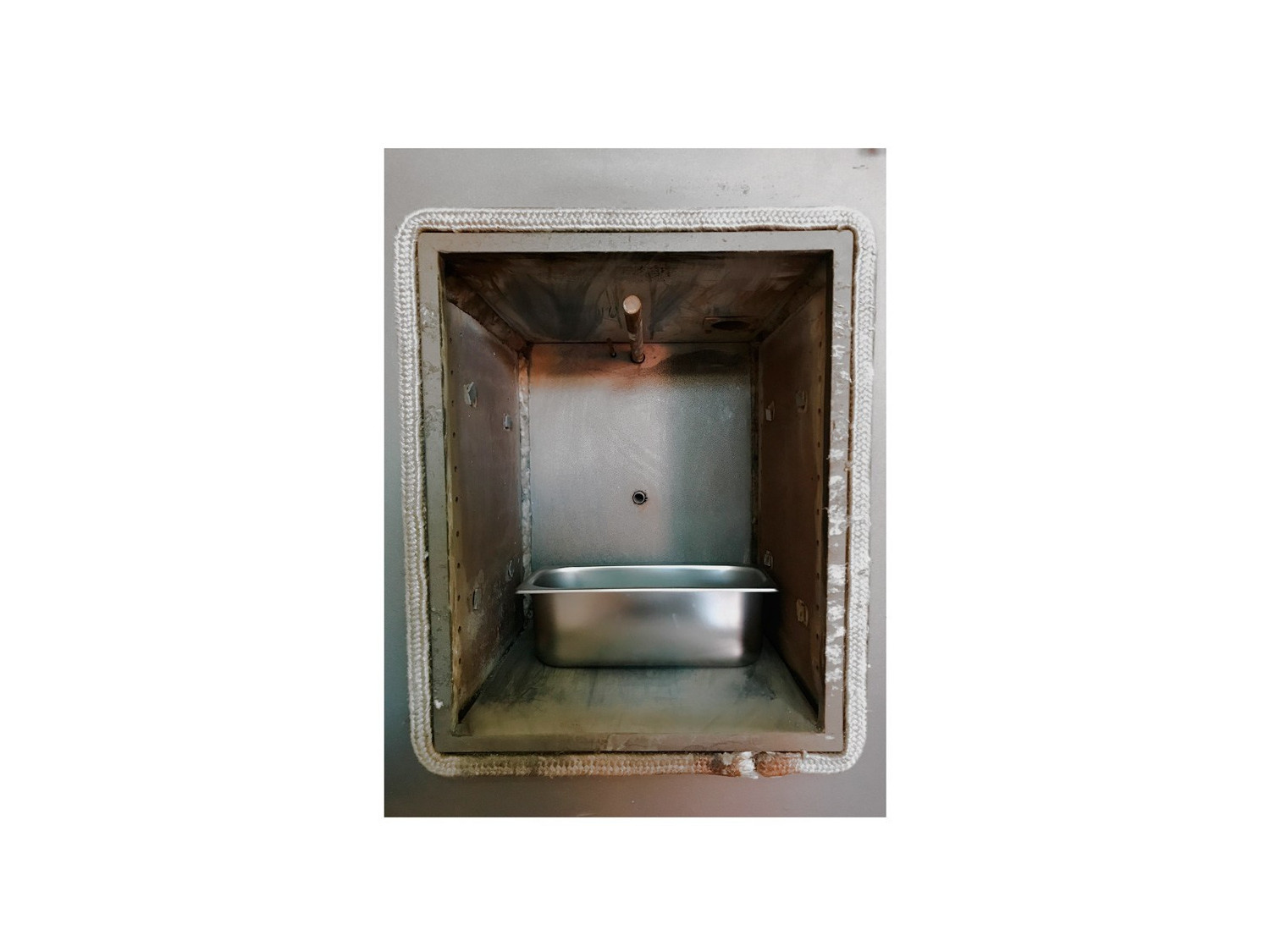 It consists of two main parts: a pyrolysis chamber and an afterburner chamber of the flue gases produced in the pyrolysis process (smoke purification). The pyrolysis chamber is heated by a heating element while the afterburner chamber of the smoke is equipped with a gas burner.