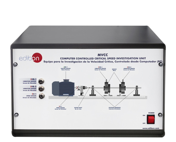 The Computer Controlled Critical Speed Investigation Unit, "MVCC", has been designed by EDIBON to study the critical bending speeds of a rotor shaft.