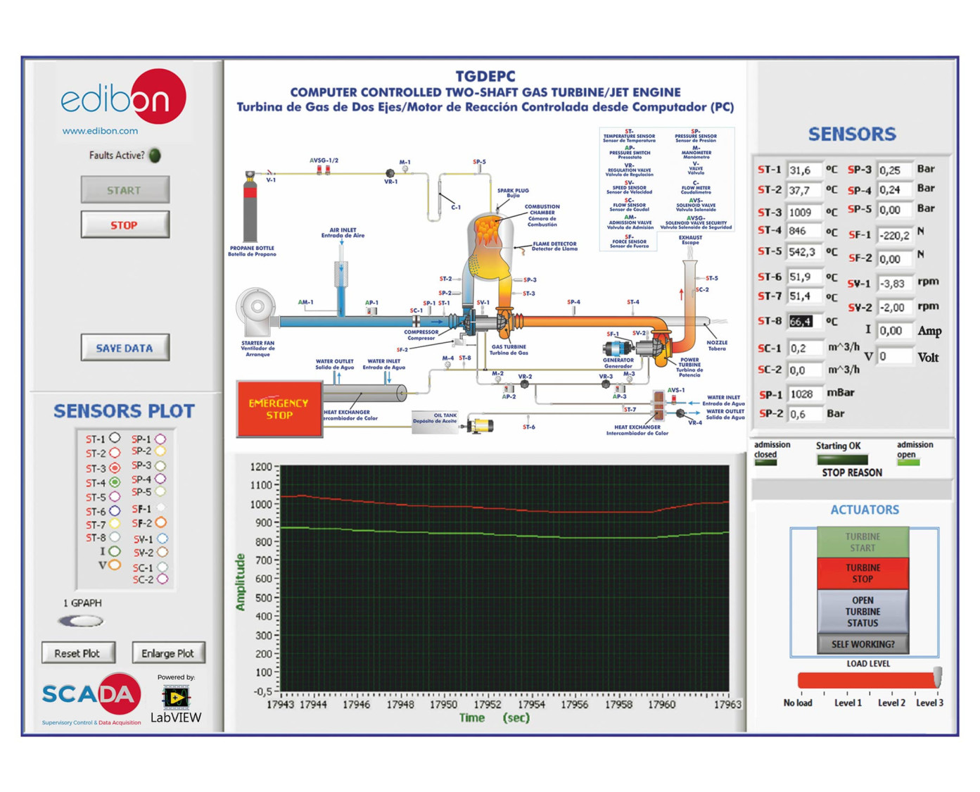 The Computer Controlled Two-Shaft Gas Turbine/Jet Engine, "TGDEPC", designed by EDBION, is a teaching unit for the operation demonstration of a Double Shaft Gas Turbine for electric generation and for other uses too.