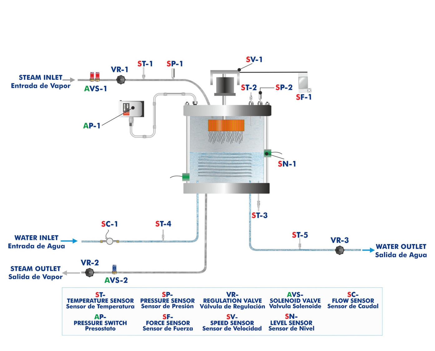 Steam generator is required to work with the TTVC unit. It must have a steam production of 8 Kg/h at minimum pressures of 6 bar. EDIBON can offer its Steam Generator (TGV-6KWA), suitable to work with this unit.