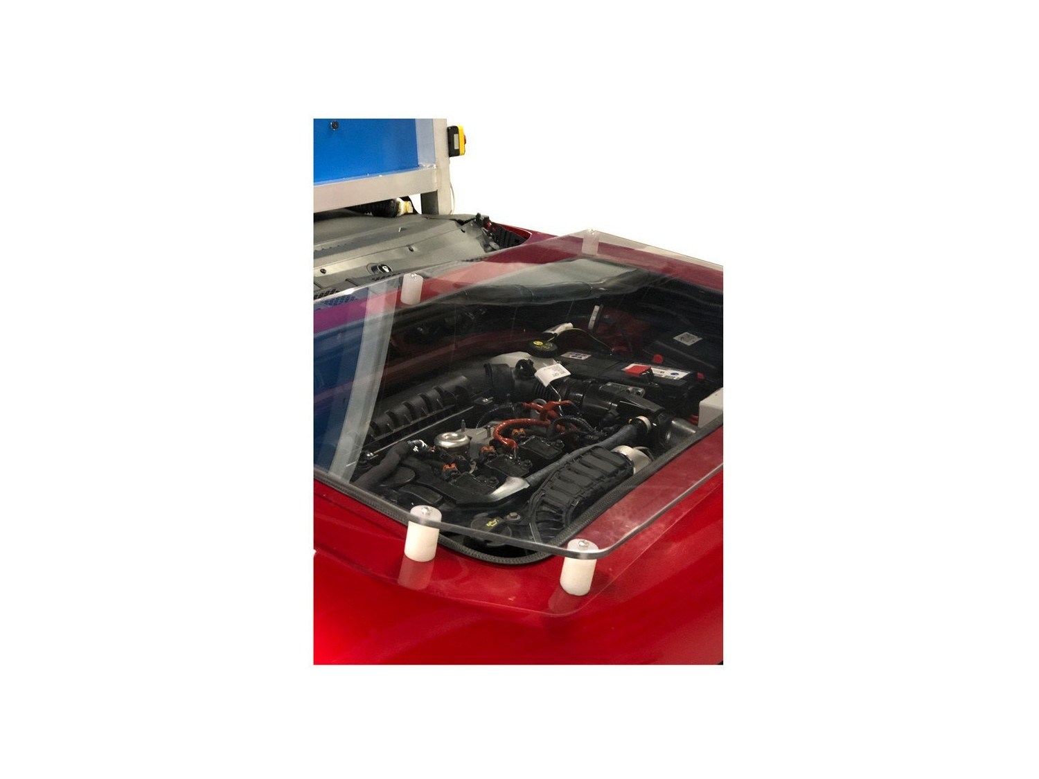 Articulated and transparent hood with electric lock for full visualization of the complete system.