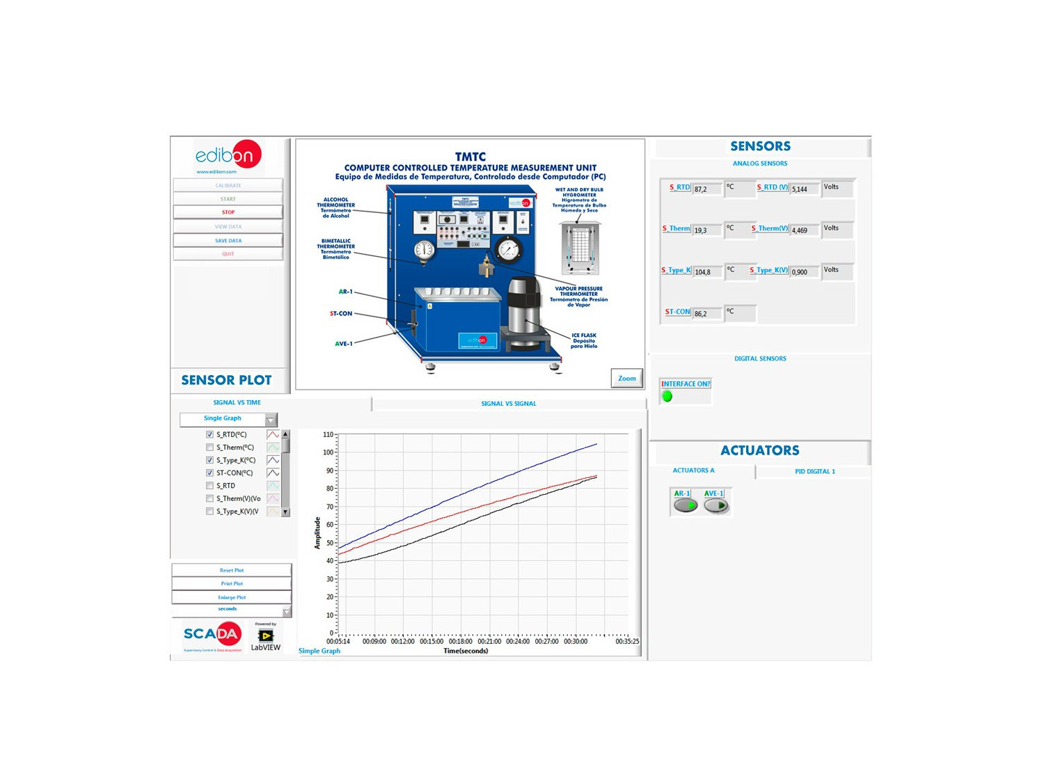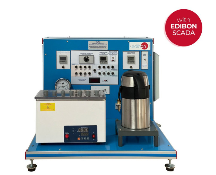 The Computer Controlled Temperature Measurement Unit, "TMTC", designed by EDIBON, works as a temperature meter that uses different temperatures measuring devices to compare, check and analyze the temperature and how is the precision for the measure and for the device that the student has used.