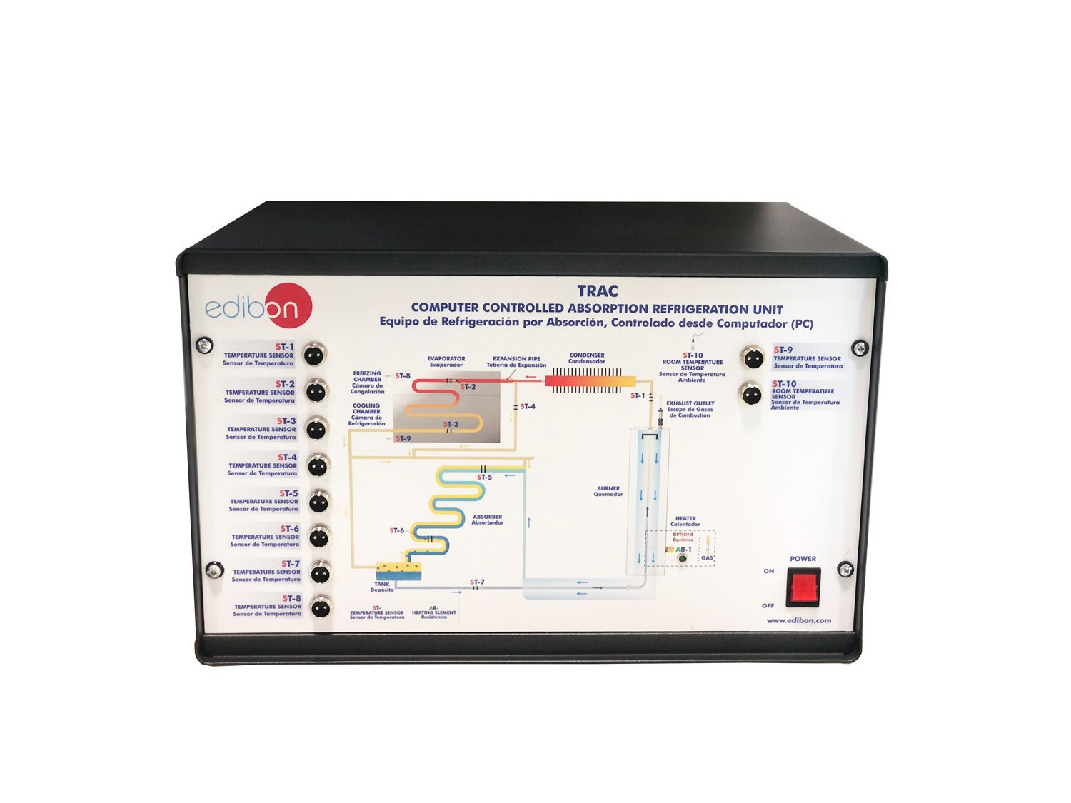 The Computer Controlled Absorption Refrigeration Unit, "TRAC", designed by EDIBON, is a complete laboratory unit for the demonstration of absorption refrigeration.